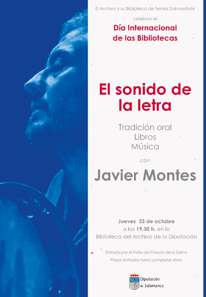 El Archivo de la Diputación de Salamanca y su Biblioteca de Temas Salmantinos celebran este jueves 24 de octubreel Día Internacional de las Bibliotecas con una actividad titulada “El sonido de la letra”, que combinará música, libros y tradición oral de la mano del músico y etnomusicólogo Javier Montes.