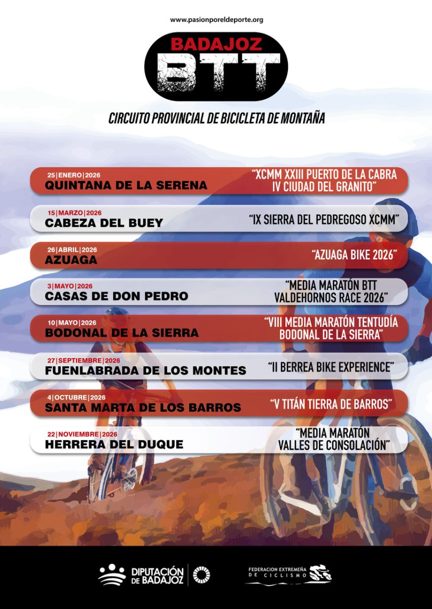 El calendario incluye carreras en Cabeza del Buey, Azuaga, Casas de Don Pedro, Bodonal de la Sierra, Fuenlabrada de los Montes, Santa Marta de los Barros y Herrera del Duque, donde se celebrará la última cita el 22 de noviembre.