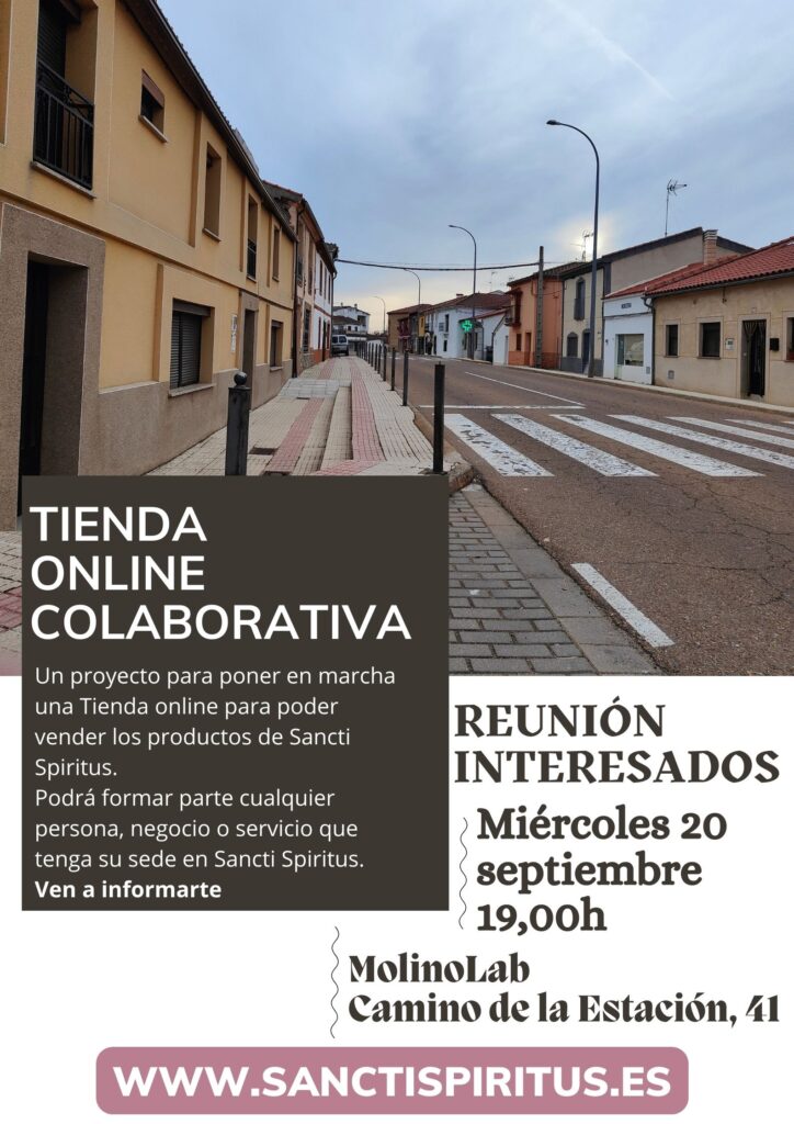 El próximo miércoles día 20 a las 19h MolinoLab (Camino de la Estación, 41) ha organizado una reunión informativa con los vecinos, comerciantes, productores de Sanctis para explicar el funcionamiento de la tienda online, las posibilidades que se pueden abrir con esta iniciativa y presentarles a su vez la página web alojada en el dominio www.sanctispiritus.es, que en estos momentos está en construcción para el público en general.